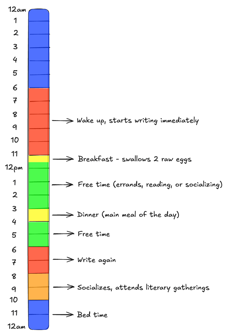 *It's worth noting that there are some discrepancies between sources, and Hugo's routine may have varied throughout his life.