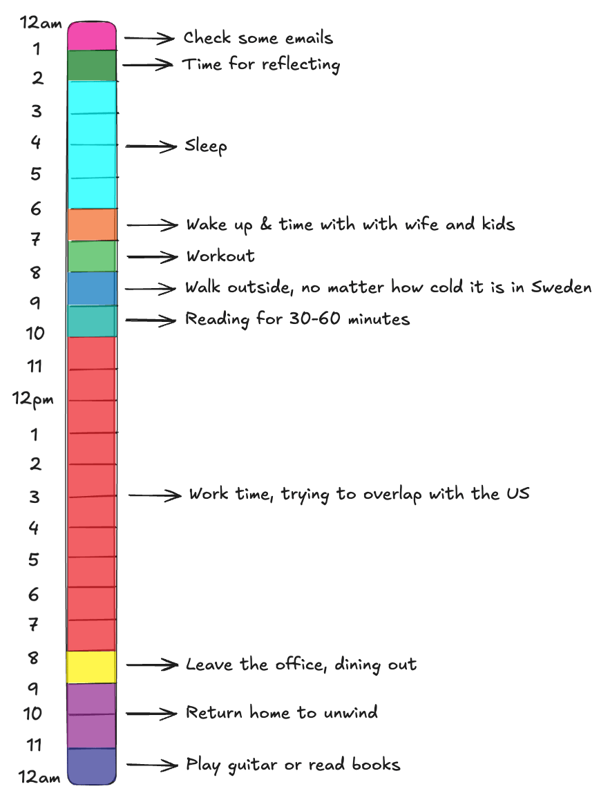 Limiting meetings: To avoid feeling overwhelmed, Daniel only schedules 3-4 meetings a day. This gives him time for other spontaneous meetings and creative thinking.